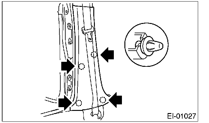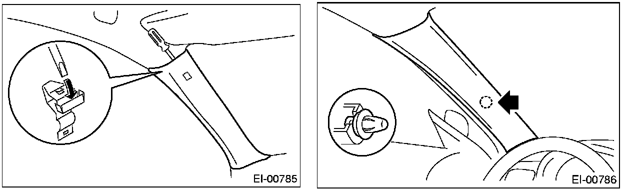 If the metal clip is damaged during removal, the A-Pillar trim must be replaced.