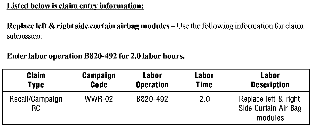 Recall - Side Curtain Air Bag Module Replacement: Overview