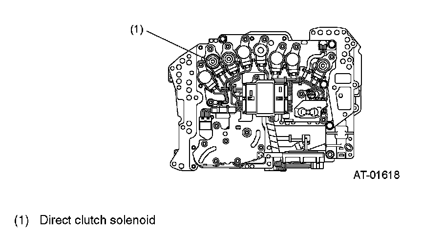 DIRECT CLUTCH SOLENOIDThe direct clutch solenoid is mounted on the control valve and is directly controlled by electrical current instructions from the TCM. This solenoid is activated when the direct clutch is to be engaged. Control values are corrected any time when necessary by the learning control and real time feedback functions to improve shift quality and eliminate errors due to aging.