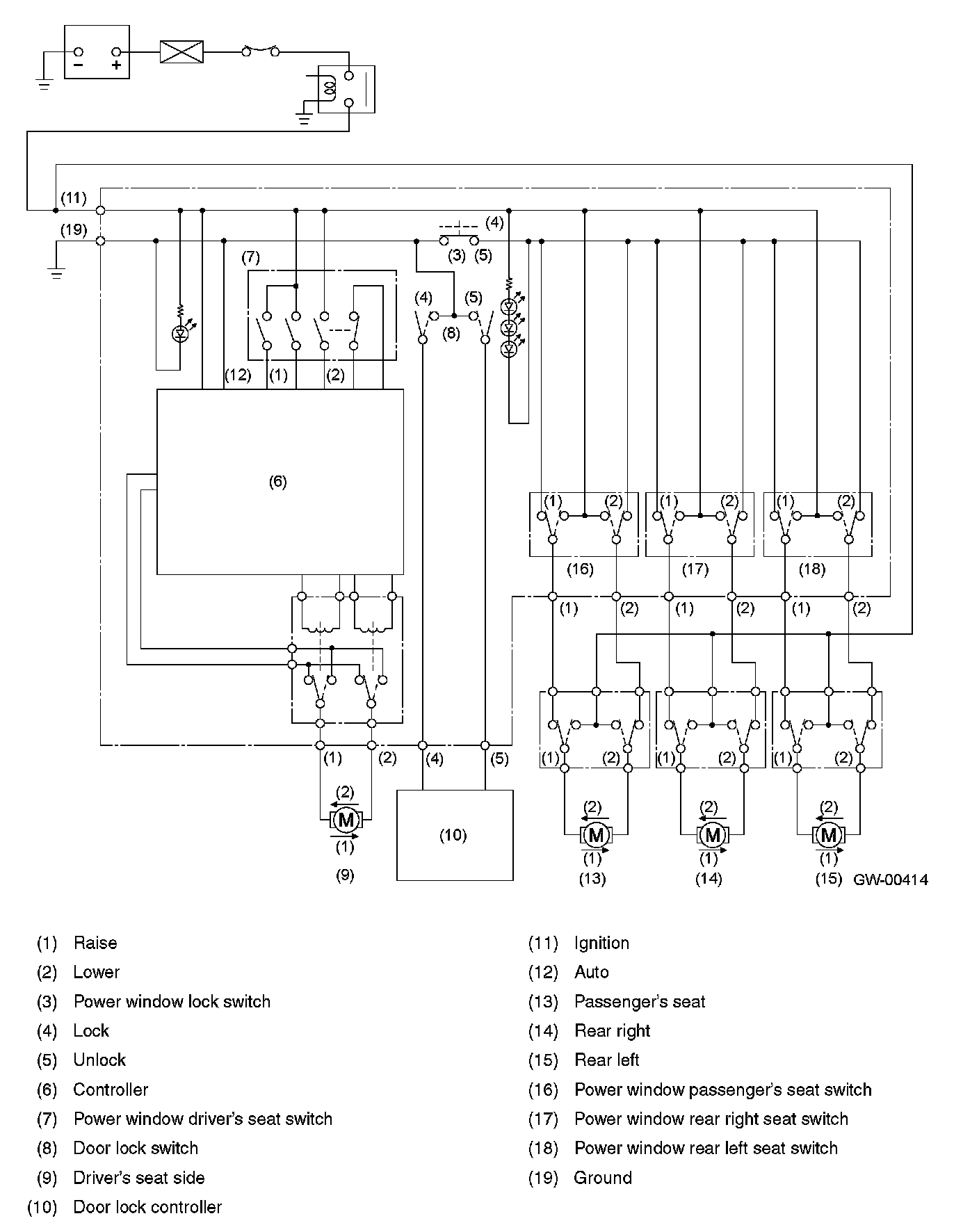 - The power window system consists of regulator motors and switches for individual doors, relays and a circuit breaker unit.