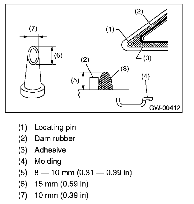 - For minimum drying time and vehicle standing time before driving after bonding, follow instructions or instruction manual from the adhesive manufacturer.