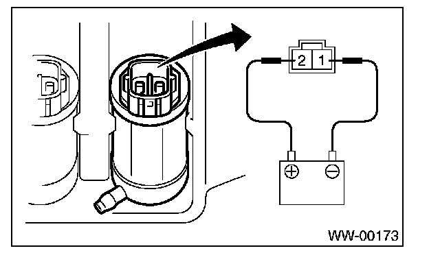 Apply battery voltage to the connector terminal of the washer motor and make sure the motor operates.