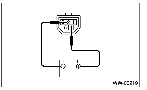 1. When the battery is connected to the terminal of connectors, confirm that the wiper motor operates at low speed.