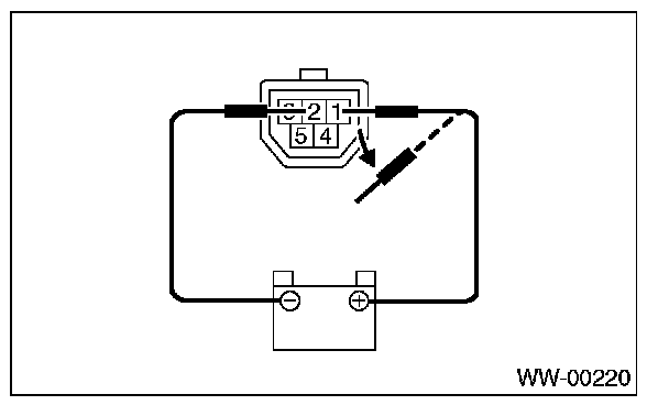 3. Connect the battery to terminals of connector, and remove the terminal connection with wiper motor rotated at low speed, and stop the wiper motor through operation.