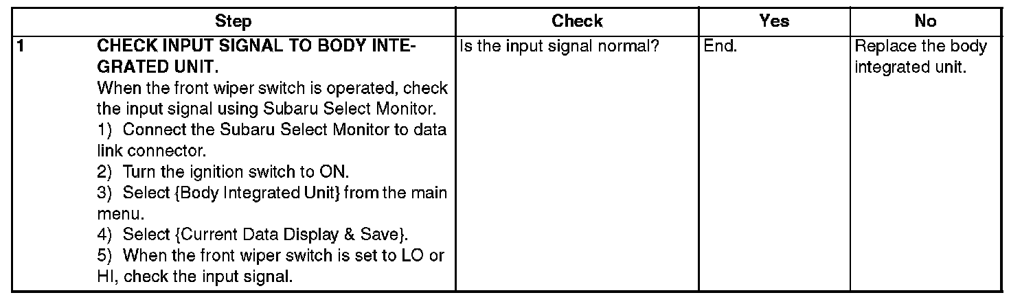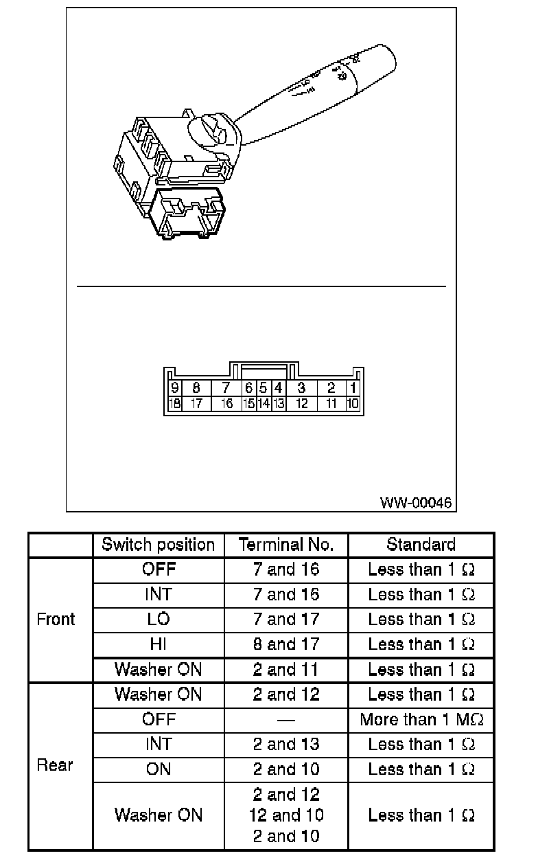 Wiper Switch: Testing and Inspection