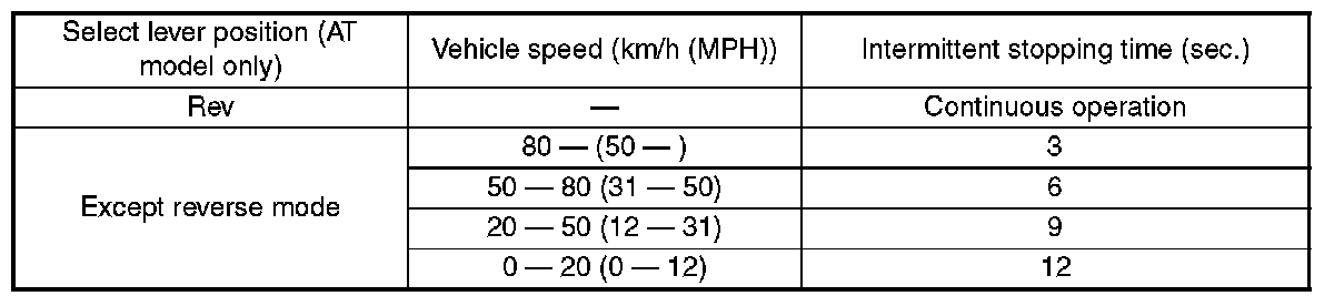 NOTE: Rear wiper intermittent time (AT model only)