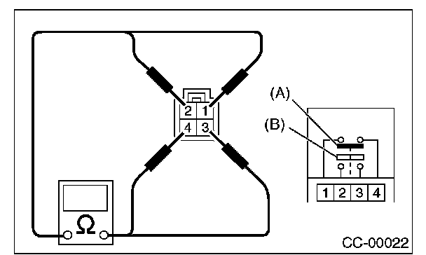 Measure the brake switch (A) and stop light switch (B) resistance.