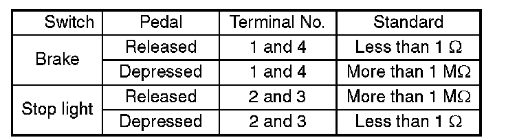 Brake Switch (Cruise Control): Testing and Inspection
