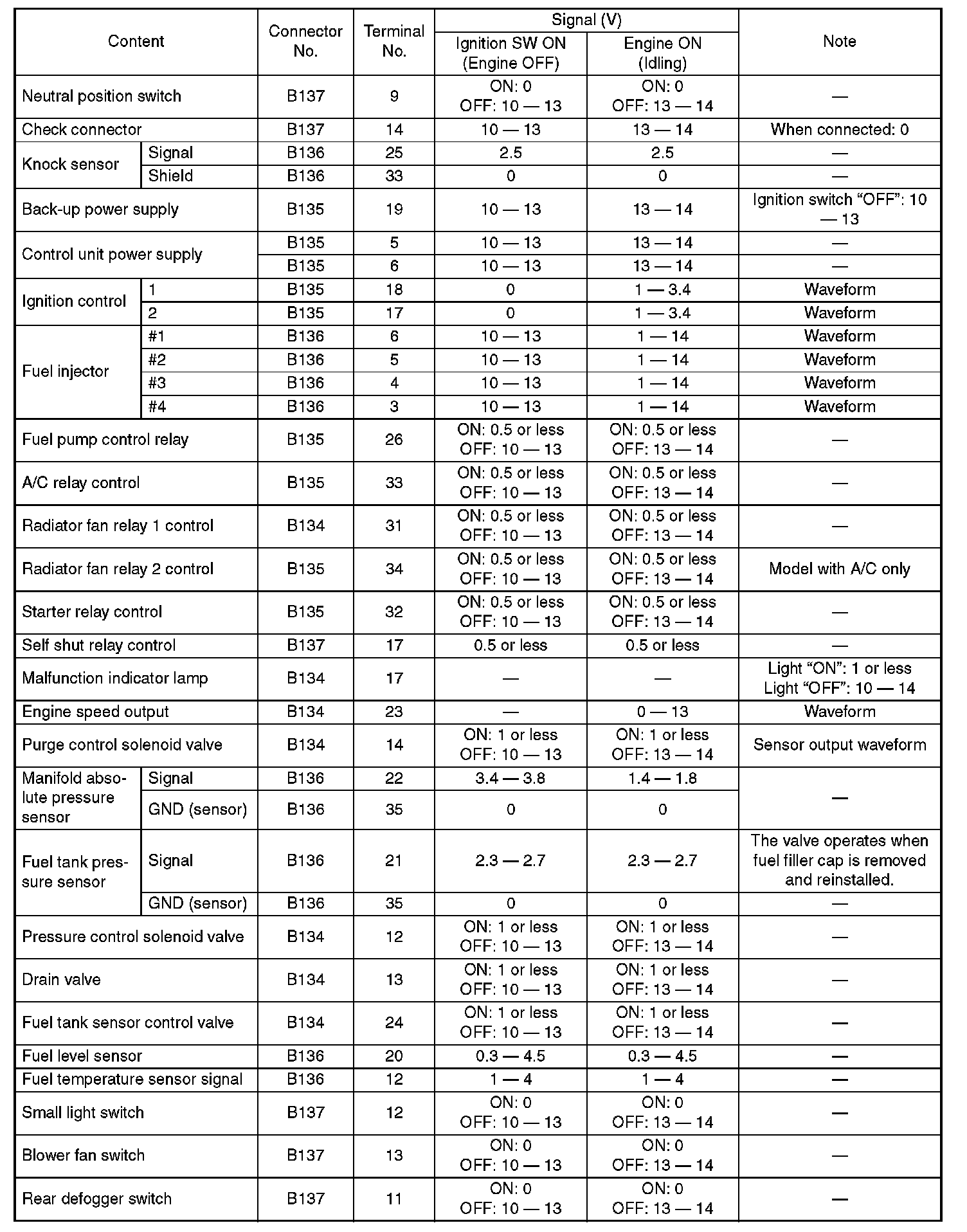 Engine Control Module (ECM) I/O Signal (Part 4):
