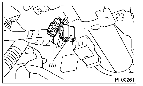 4. Connect the test mode connector (A) at the lower portion of instrument panel (on driver's side).