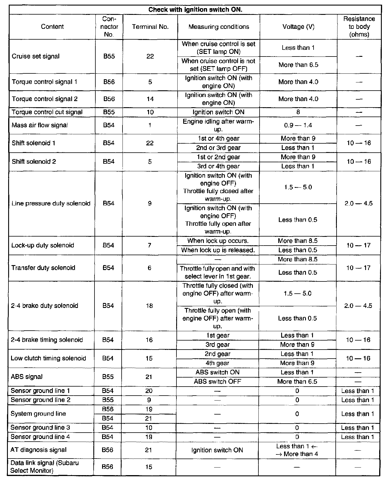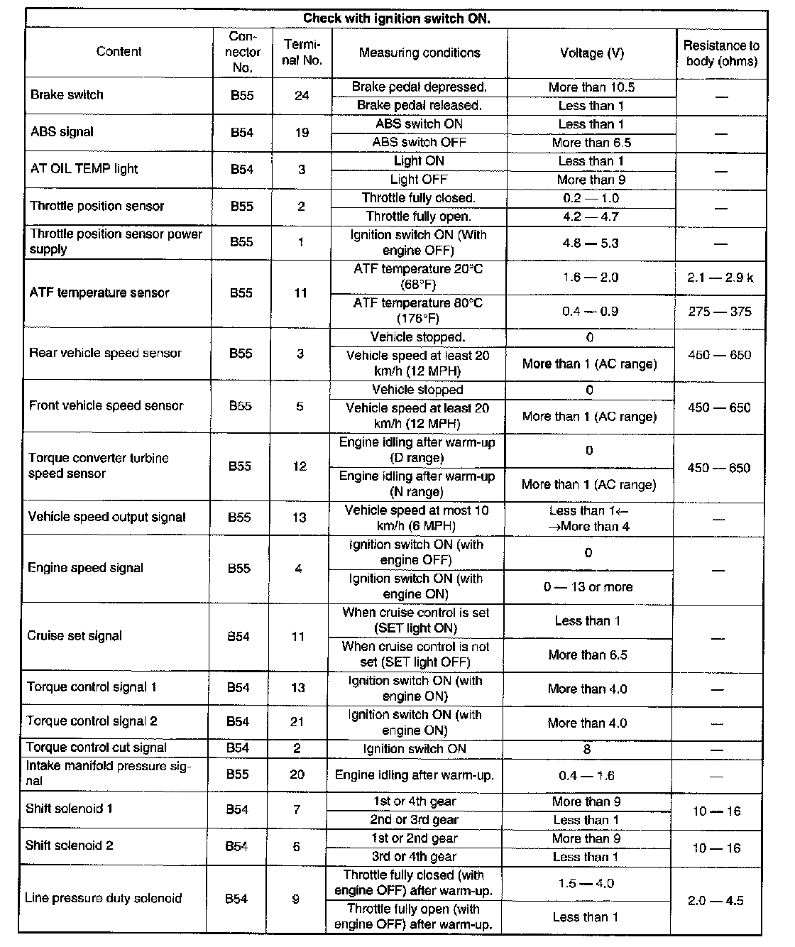 Transmission Control Module (TCM) 1/0 Signal
