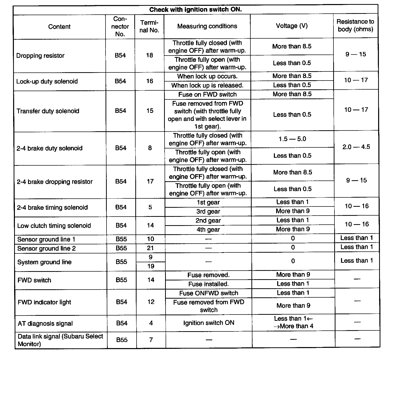 Pinout Values and Diagnostic Parameters
