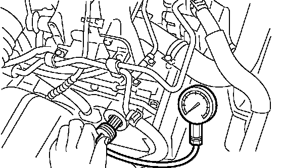8) Crank the engine by means of the starter motor, and read the maximum value on the gauge when the pointer is steady.