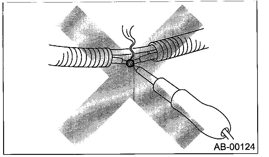 - If any damage, opening, or rust is found on the airbag system wire harness, do not attempt to repair using soldering equipment. Be sure to replace the faulty harness with a new genuine part.