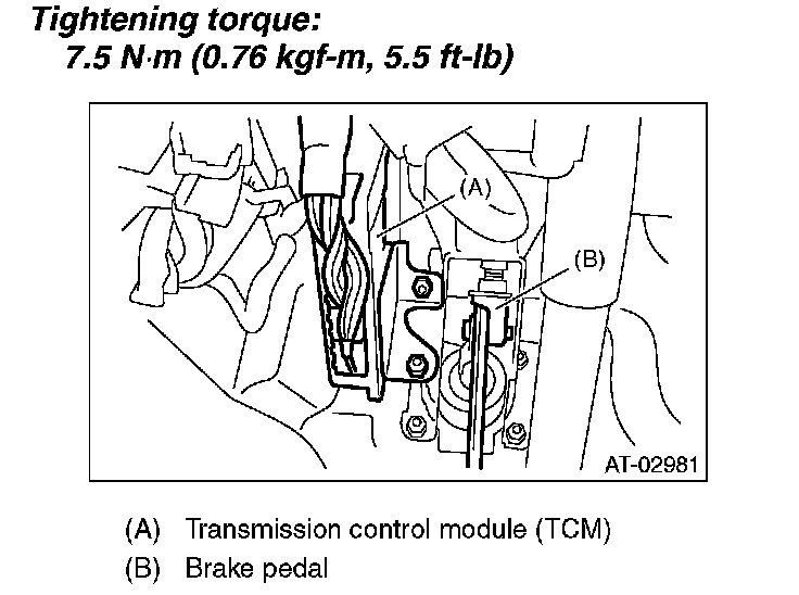 Tightening torque: 7.5 Nm (0.76 kgf-m, 5.5 ft. lbs.)
