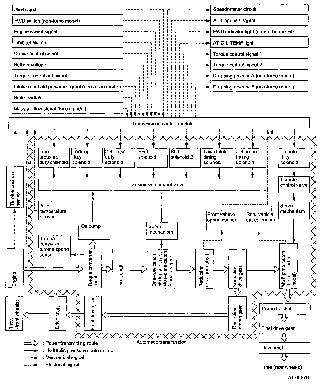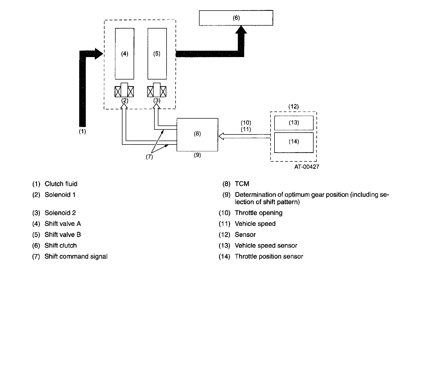 The TCM performs these controls based mainly on the throttle opening, engine speed and vehicle speed.