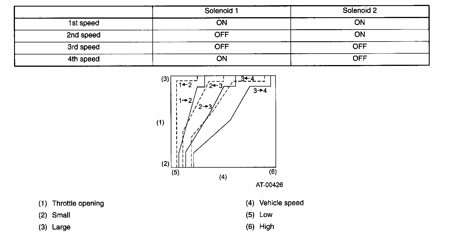 ^ A shift to each gear takes place according to ON-OFF operation of both the solenoids as indicated in the table above.