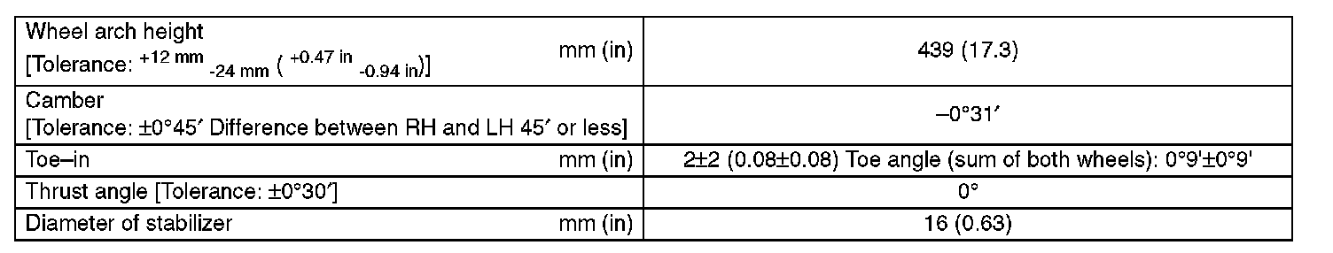^ Other items indicated in the specifications table cannot be adjusted. If other items exceed specifications, check the suspension parts and connections for deformation, and replace with new ones as required.