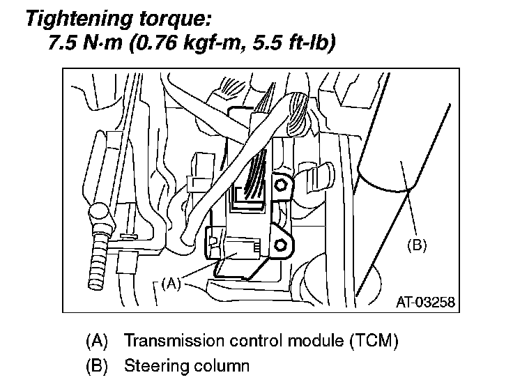 Tightening torque: 7.5 Nm (0.76 kgf-m, 5.5 ft. lbs.)