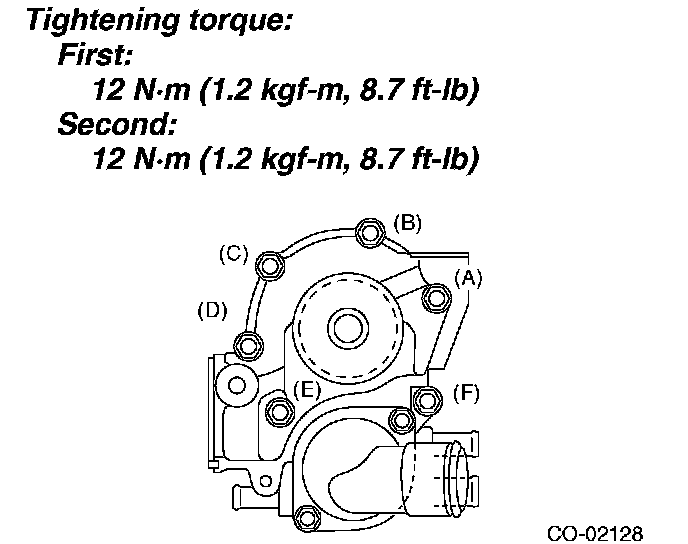 Tighten all bolts 29 Nm (3.0 kgf-m, 22 ft. lbs.) in alphabetical sequence.