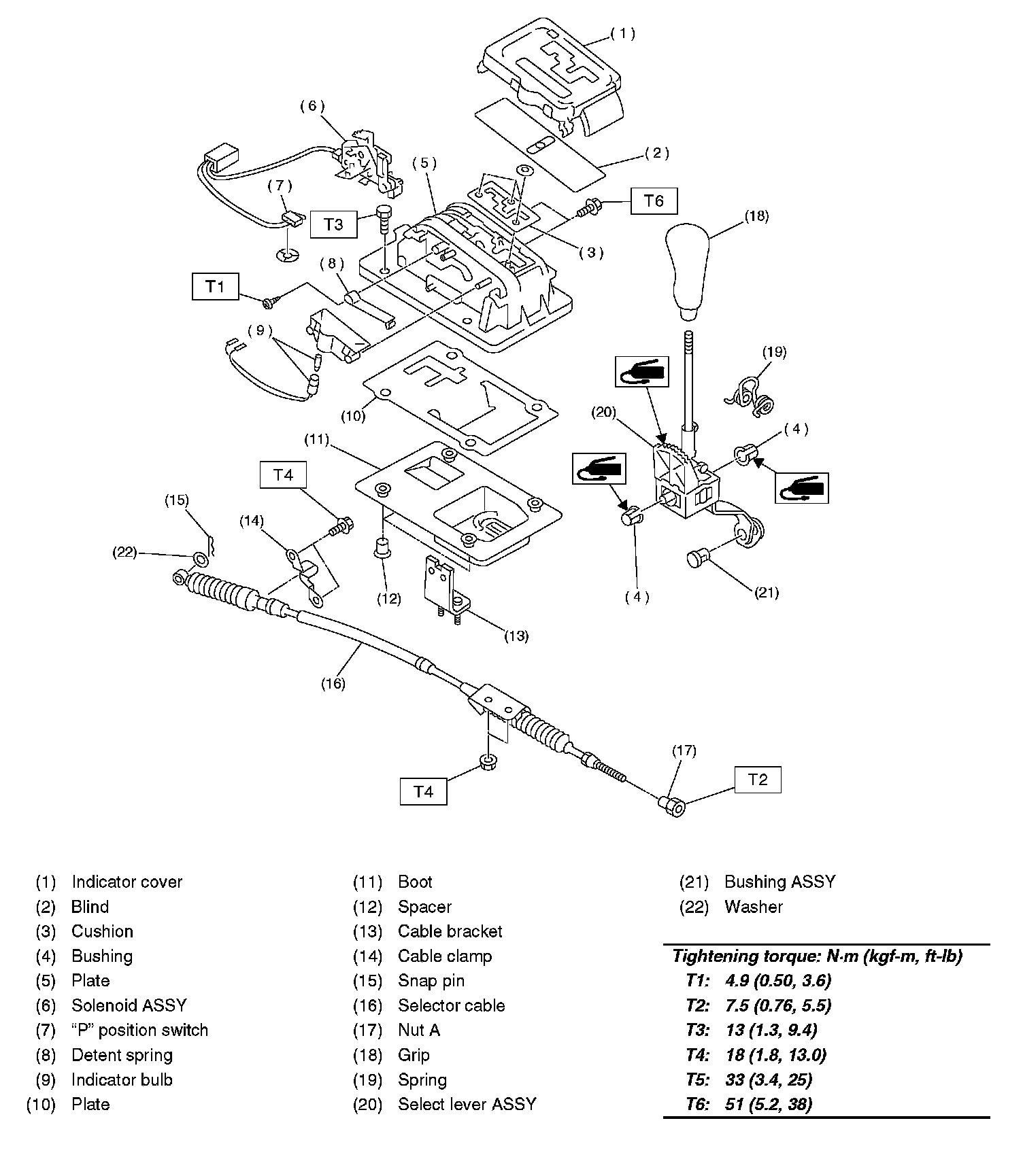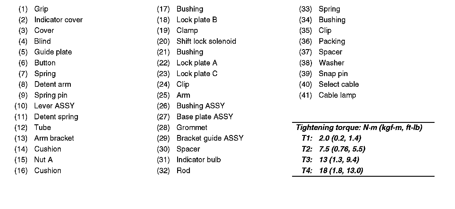 AT SELECT LEVER (EXCEPT SPORT SHIFT MODEL)