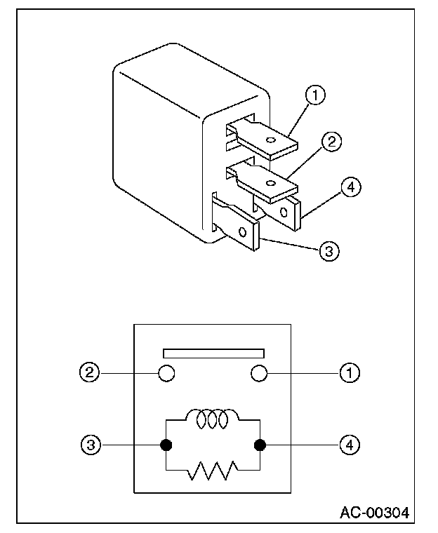 While applying battery voltage to the terminal between (3) and (4), check continuity between (1) and (2).