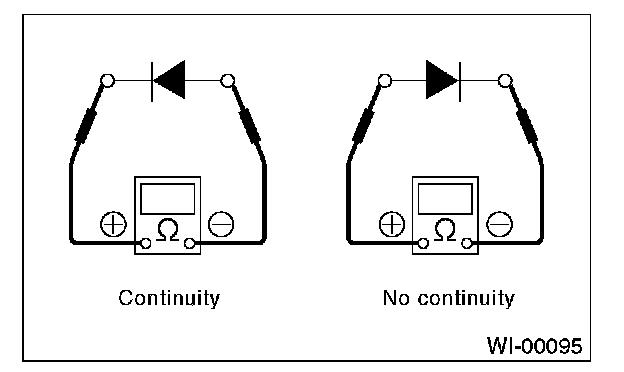 2. Use an ohmmeter to check for the diode continuity. When contacting the negative lead to diode positive side and positive lead to negative side, there should be continuity. When contacting the two leads in reverse, there should be no continuity.