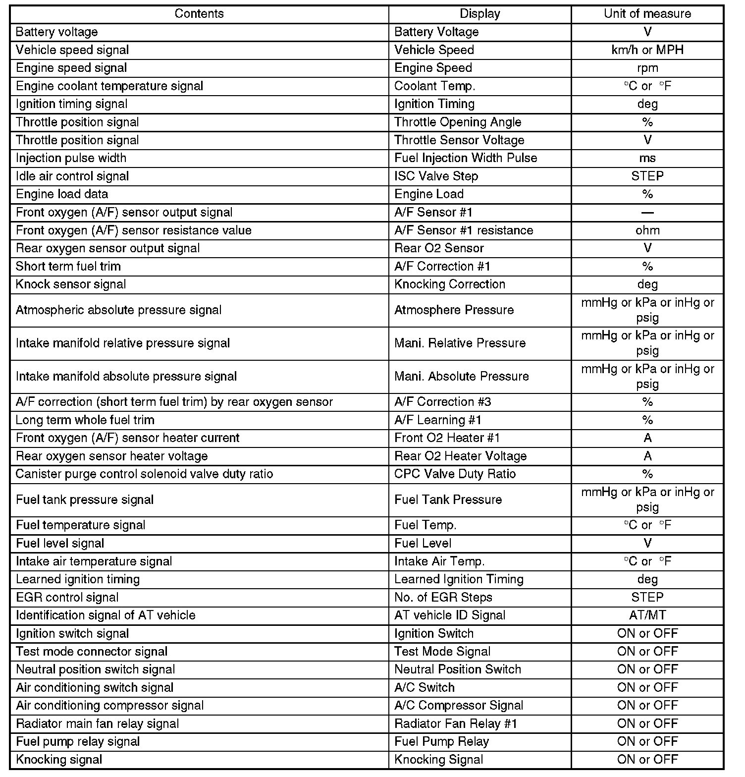 READ CURRENT DATA FOR ENGINE. (OBD MODE)