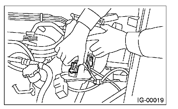 3. Disconnect rear window glass washer hose from washer motor, then plug connection with a suitable cap.