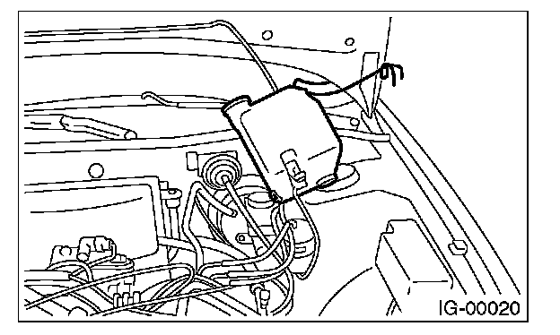 4. Remove the two bolts which hold the washer tank, then take the tank away from the working area.