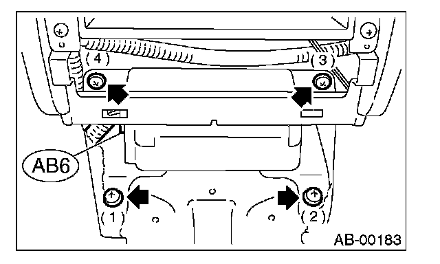 5. Remove four airbag control module mounting bolts in the order shown in the figure.