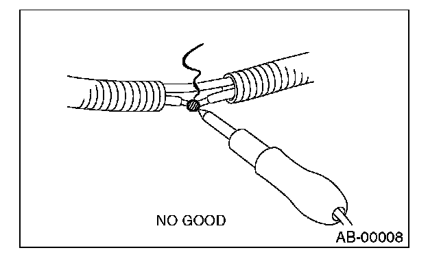 - When checking, use a test harness. Do not directly apply the tester probe to any connector terminal of the airbag.