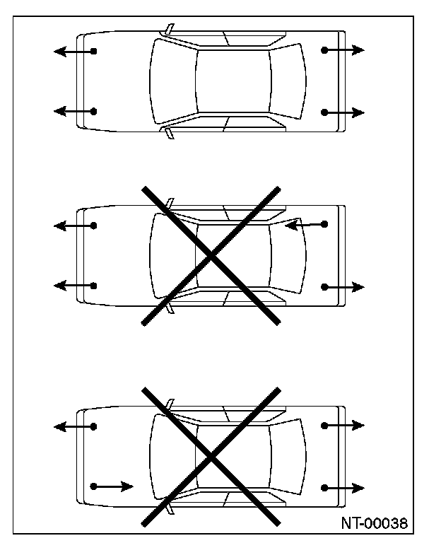 When using a lift or jack-ridged rack to raise a vehicle, always follow instructions concerning jack-up points and weight limits to prevent the vehicle from falling, which could result in injury. Be especially careful to make sure the vehicle is balanced before raising it.