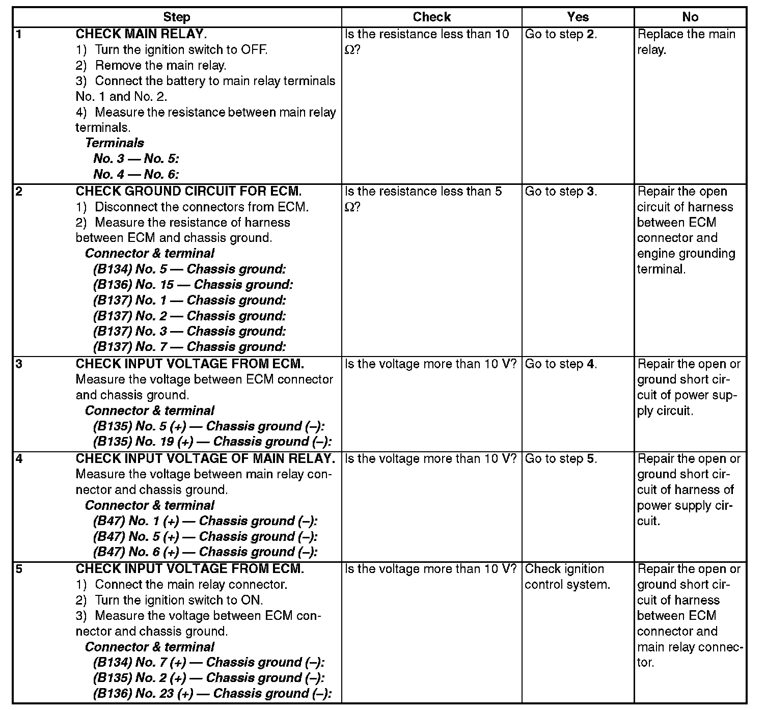 Check Power Supply and Ground Line of Engine Control Module (ECM)
