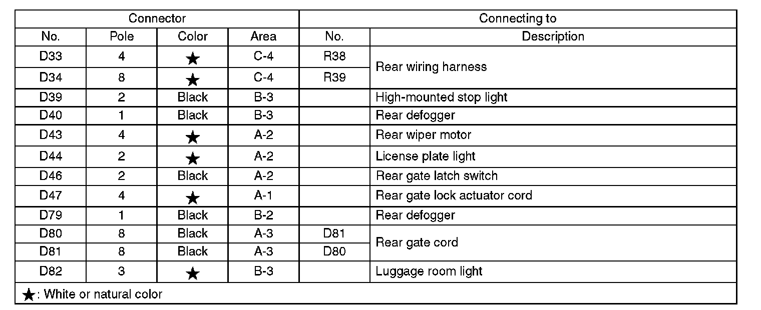 Rear Wiring Harness and Rear Gate Cord
