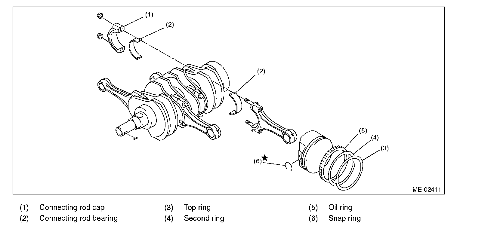 5. Check the piston pin snap ring for distortion, cracks and wear.