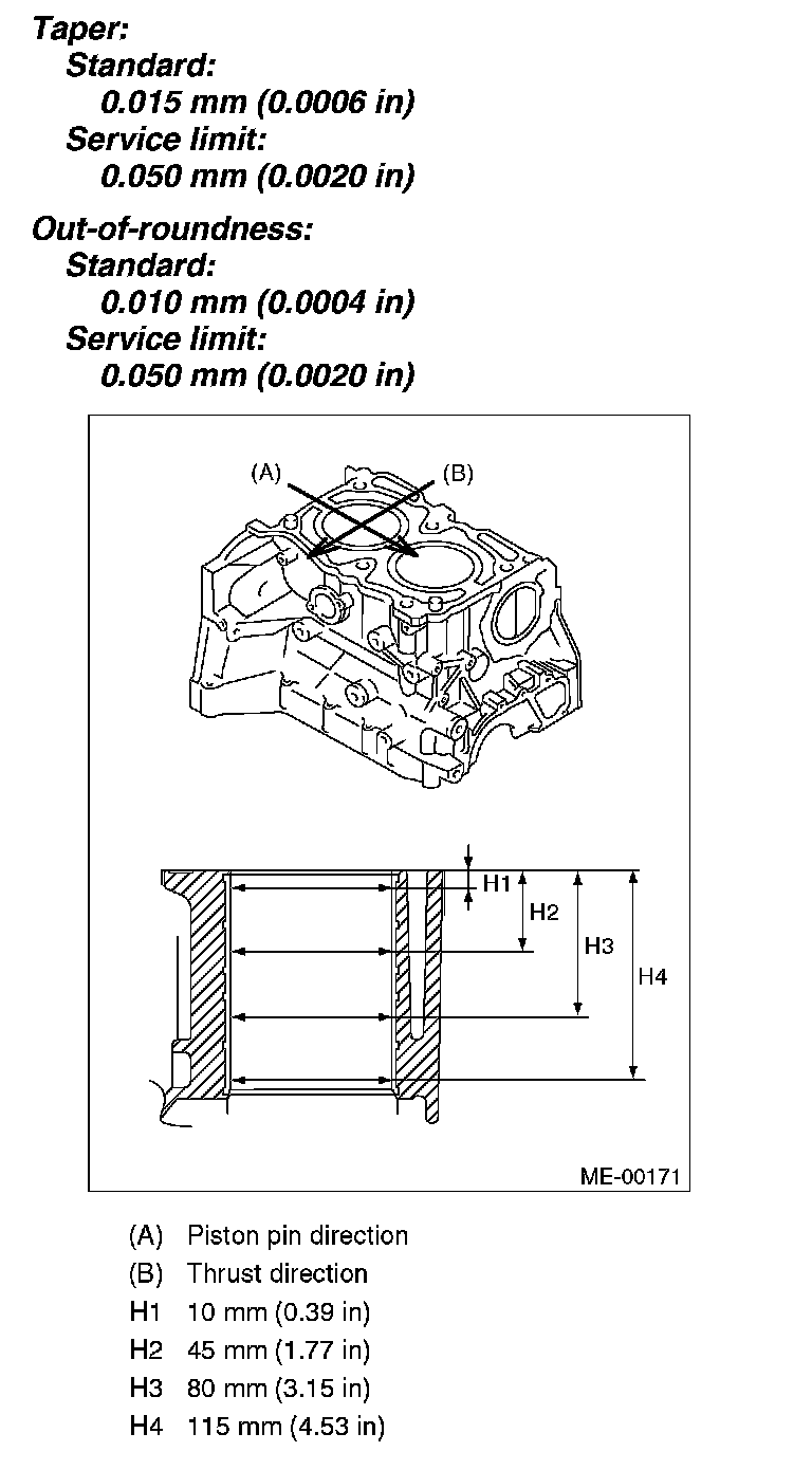 b. If the cylinder inner diameter exceeds the limit after boring and honing, replace the cylinder block.