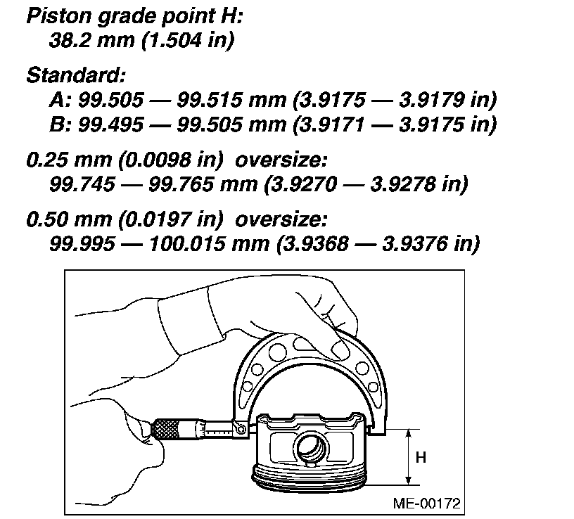 0.50 mm (0.0197 inch) oversize: 99.995 - 100.015 mm (3.9368 - 3.9376 inch)