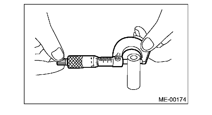 2. Measure the piston-to-cylinder clearance at each cylinder. If any of the clearances is not within the standard value, replace the piston and bore the cylinder to enable use of the oversize piston.