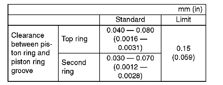 4. Measure the clearance between piston ring and piston ring groove with a thickness gauge.