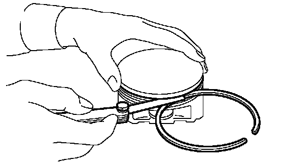 5. Install the expander, lower rail and upper rail in this order by hand. Install the second ring and top ring along with the piston ring expander.