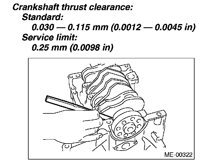4. Measure the thrust clearance of crankshaft at center bearing. If clearance outside of standard value, replace the bearing.