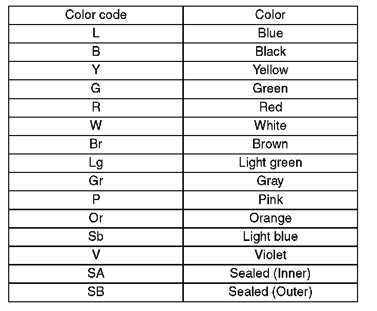 - The wire color code, which consists of two letters (or three letters including Br or Lg), indicates the standard color (base color of the wire covering) by its first letter and the stripe marking by its second letter.