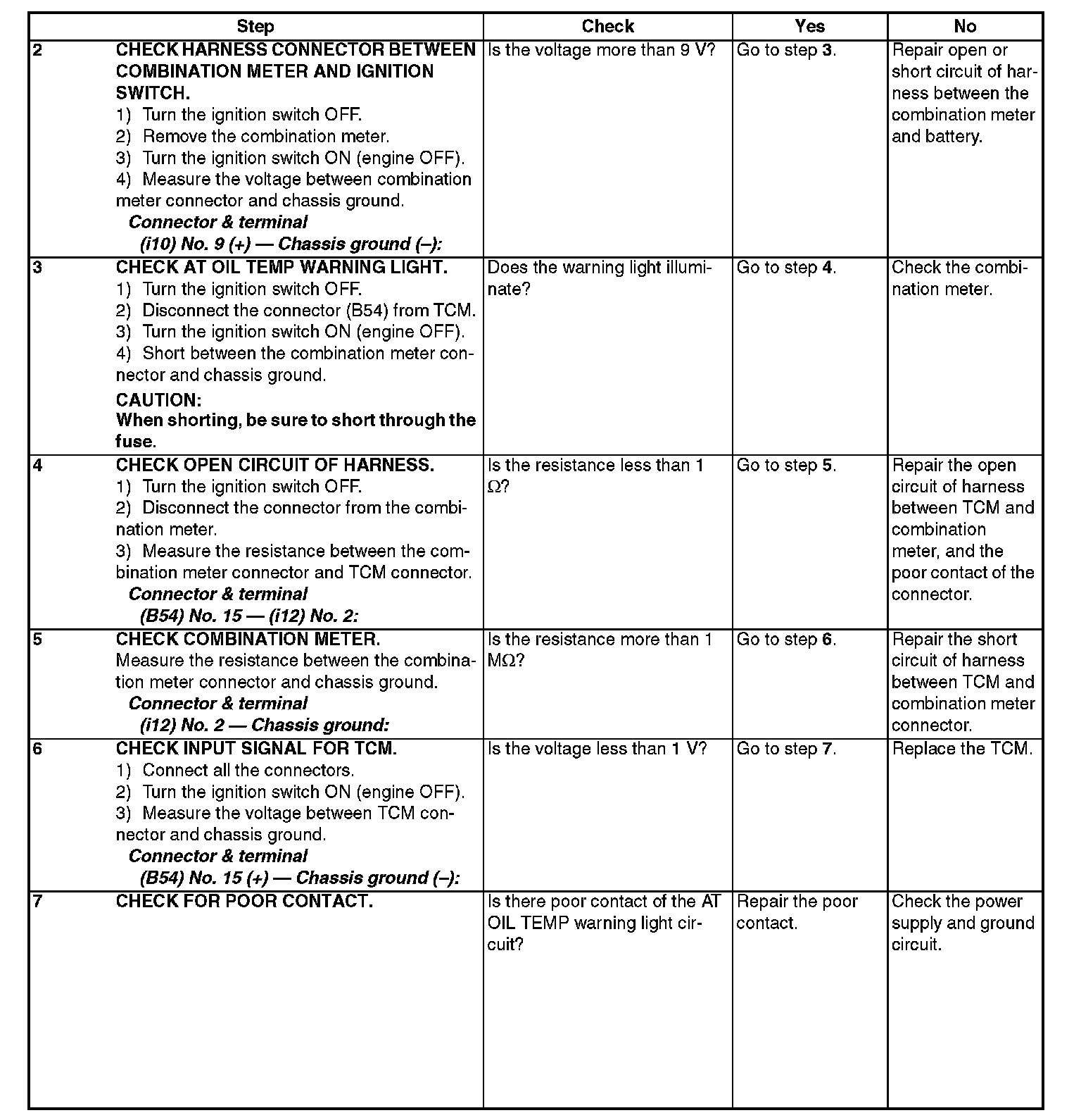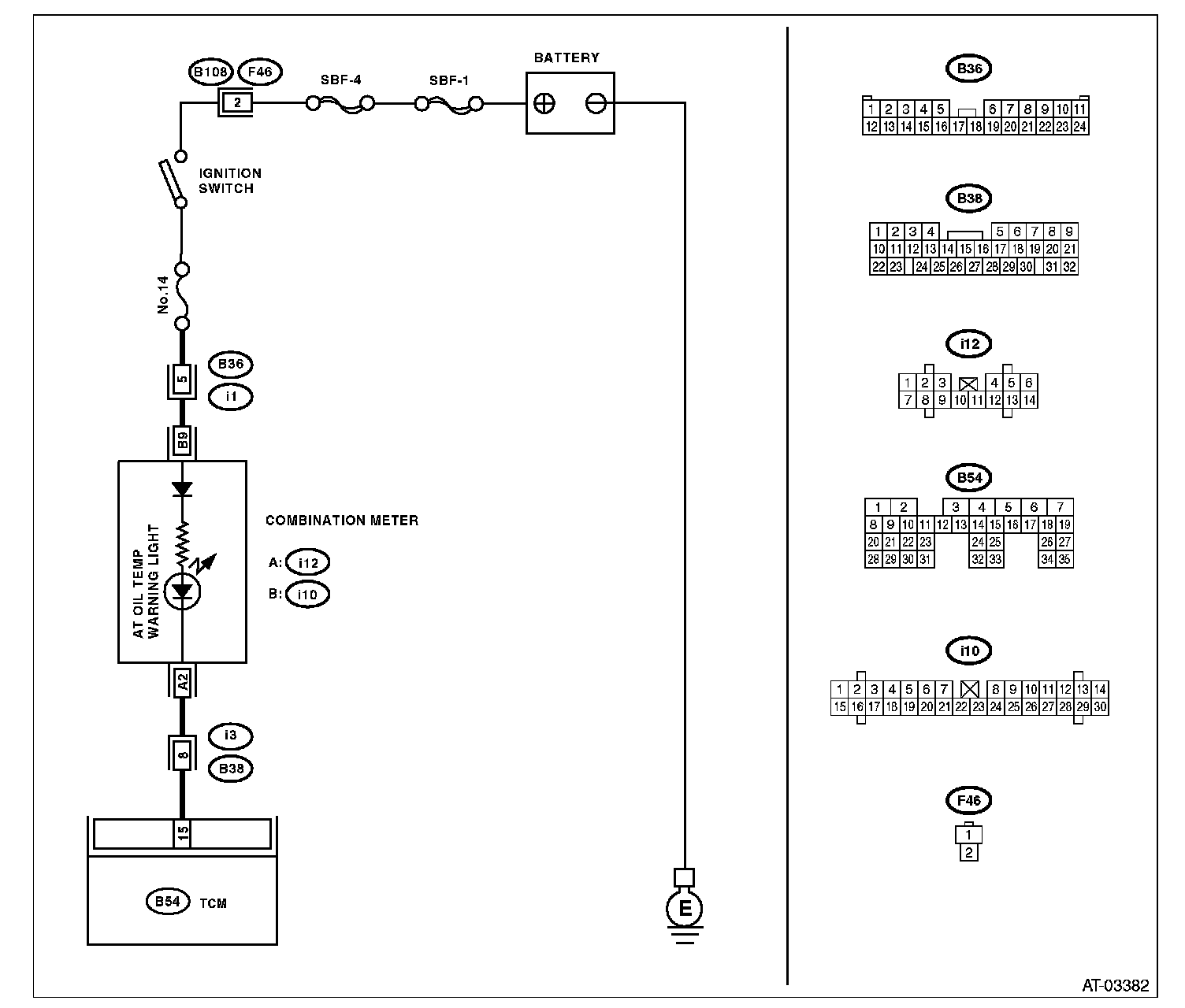 DIAGNOSIS: The AT OIL TEMP warning light circuit is open or shorted.