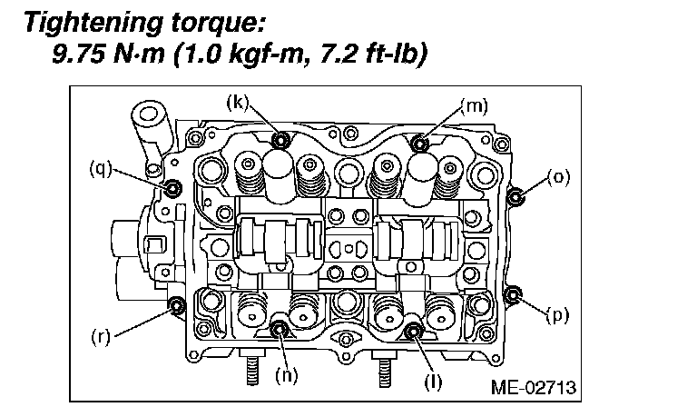 Tightening torque 9.75 Nm (1.0 kgf-m, 7.2 ft. lbs.)