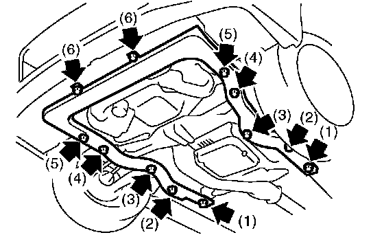Loosen bolt (1)and leave a few threads caught, then remove the bolts in the order of (2), (3), (4), (5), and (6).
