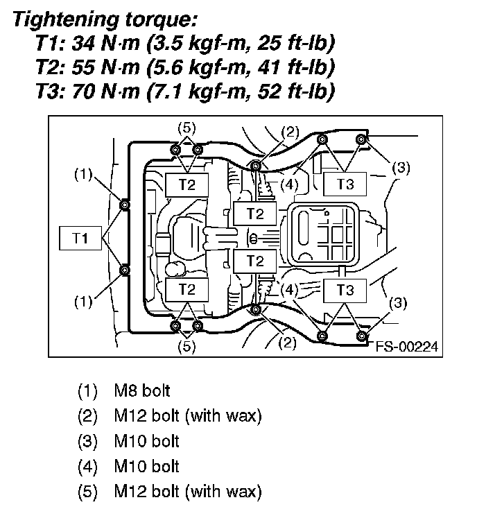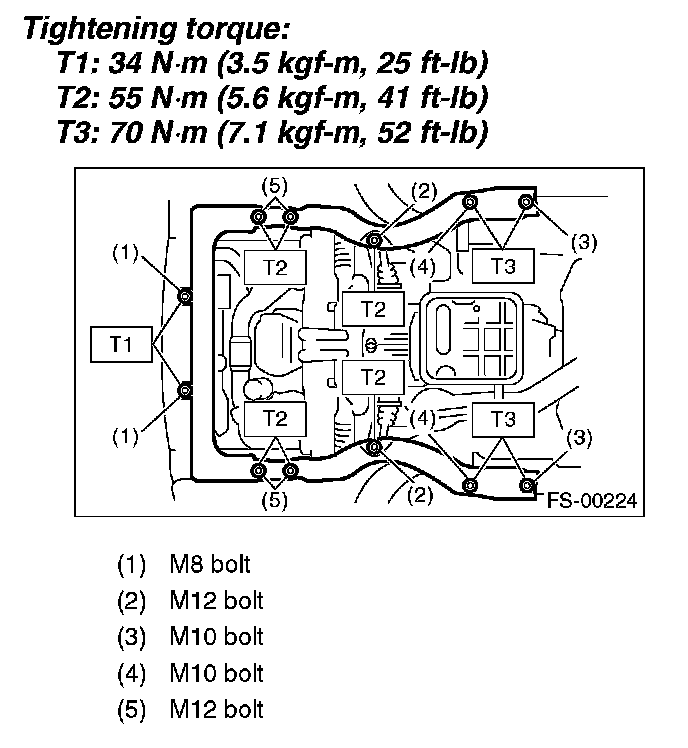 T1: 34 Nm (3.5 kgf-m, 25 ft. lbs.)