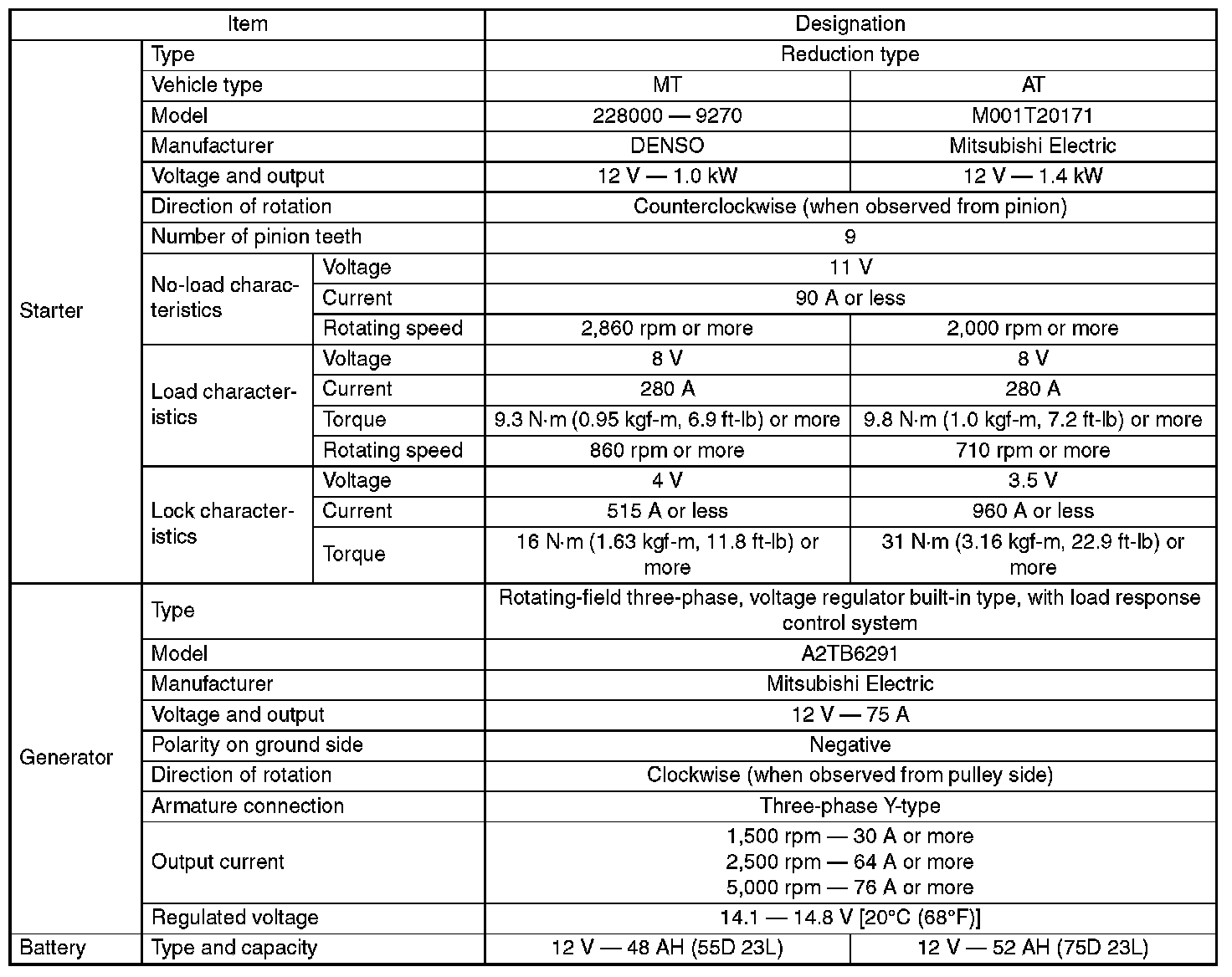 Electrical Specifications