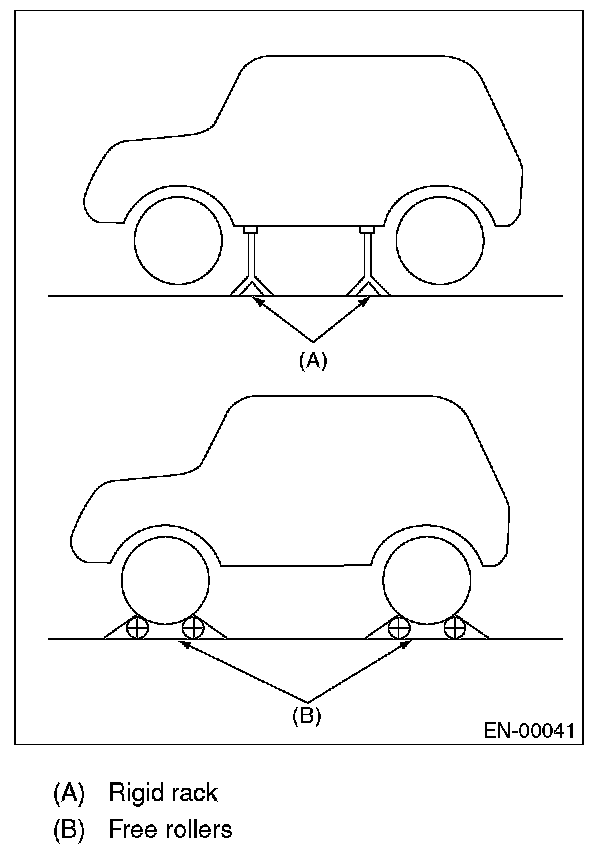2. Raise the vehicle using a garage jack and place on rigid racks or drive the vehicle onto free rollers.