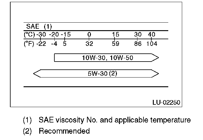 CAUTION: When replenishing oil, it does not matter if the oil to be added is a different brand from that in the engine; however, use oil having the API standard and SAE viscosity No. designated by SUBARU.